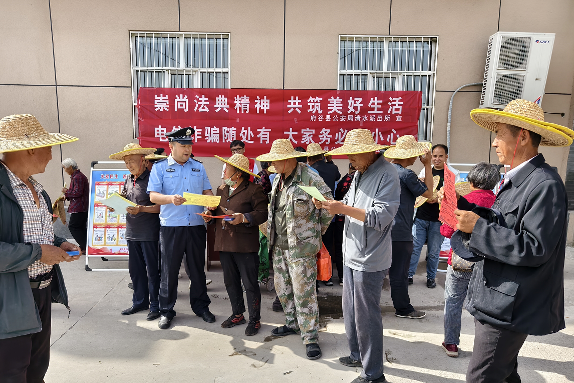 五月农忙时节,农村集市成为农民们交流信息、购买农资的重要场所。为了提高农民群众的防骗意识,普及法律知识,府谷县公安局清水派出所利用群众“赶大集”的有利时机开展法治集中宣传活动。
