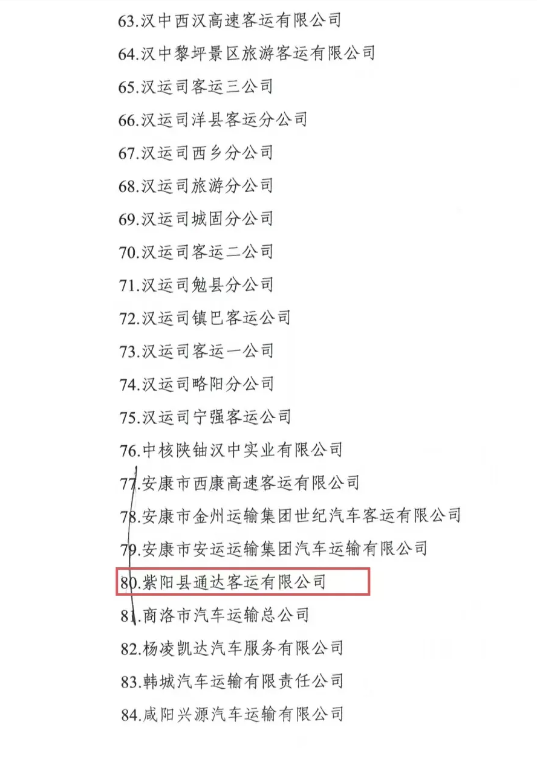 6月21日,陕西省道路运输事业发展中心公布了全省2023年度道路客运企业及汽车客运站质量信誉考核结果的通知,紫阳县通达客运有限公司在此次质量信誉考核中,荣获”质量信誉考核AAA级企业“荣誉称号。