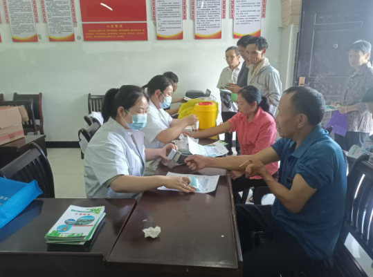 7月24日,在磨坝村体检现场,汉阳中心卫生院医护人员携带专业的体检设备,为年老体弱、行动不便、外出就医困难的残疾人提供测量血压、血糖、血常规等检查。同时为残疾人耐心讲解科学饮食、康复技巧、合理用药等相关知识,并发放健康知识手册50余份。