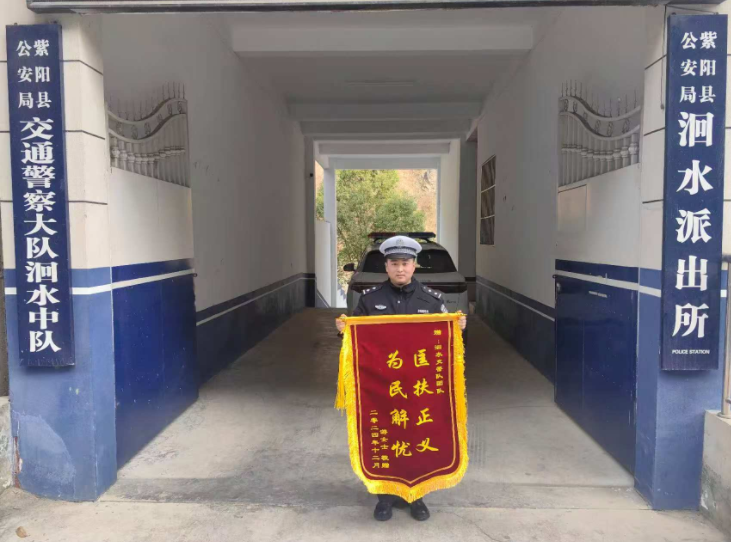 12月23日,岚皋县堰门镇游女士将一面印有“匡扶正义,为民解忧”的锦旗送到紫阳县公安局洄水交警中队手里,对中队事故处理过程中尽心尽责的态度表示衷心感谢。