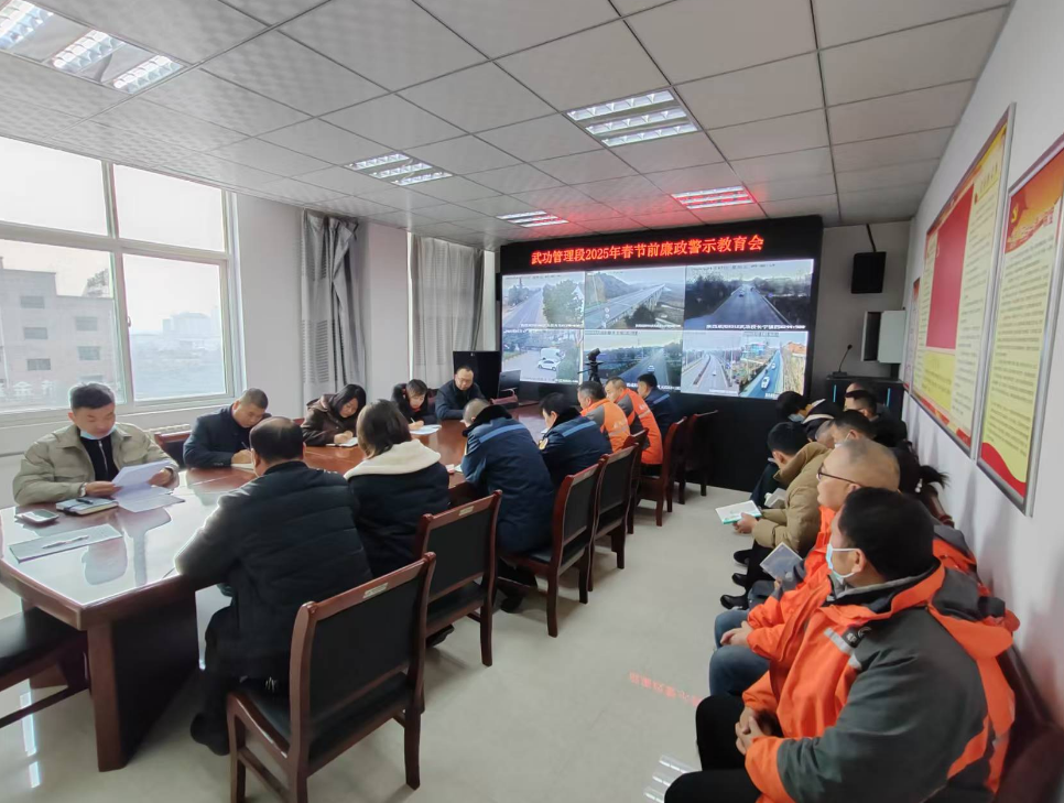 为进一步加强党员干部职工的廉洁自律意识,营造廉洁祥和的节日氛围,1月17日,咸阳市公路局武功管理段利用理论中心组学习(扩大)会议,组织全段党员干部职工开展2025年春节前廉政警示教育。