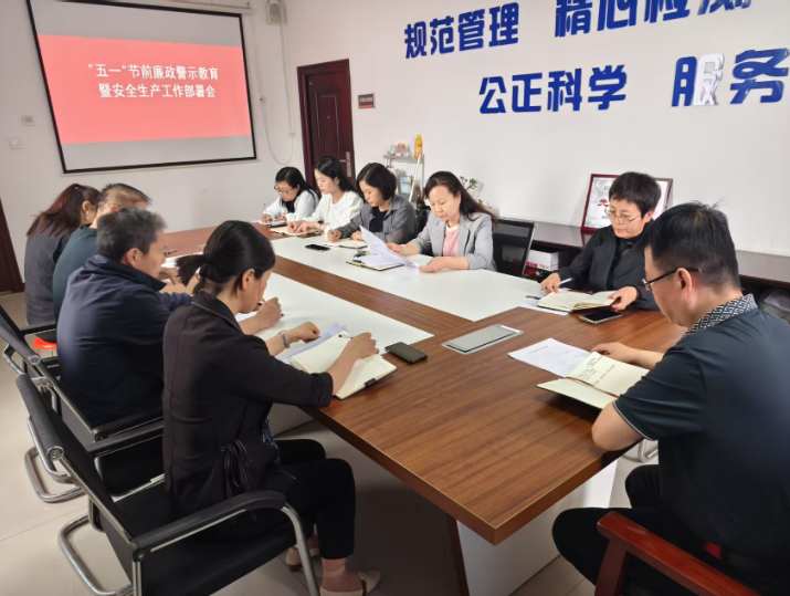 “五一”节将至,为营造风清气正节日氛围,筑牢廉政安全“双防线”, 2025年4月29日,咸阳市公路局中心试验室召开“五一”节前廉政警示教育暨安全生产工作部署会,试验室领导班子、全体干部职工参加会议。