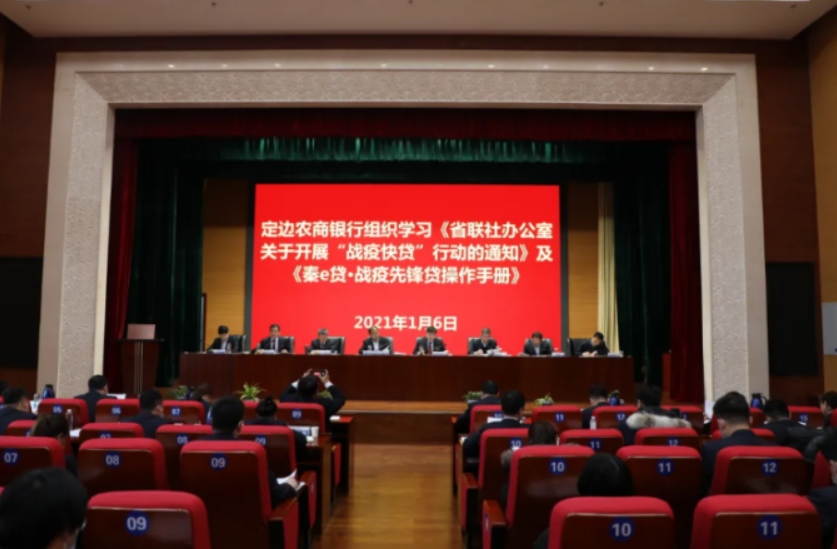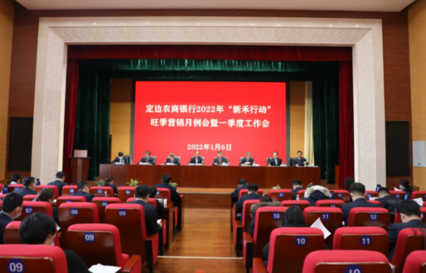 会议传达了榆林审计中心2022年“新禾行动”旺季营销月例会暨一季度工作会会议精神,组织学习了《陕西省农村信用社联合社办公室关于开展“战疫快贷”行动的通知》和《秦e贷·战疫先锋贷操作手册》,通报了定边农商银行2021年经营情况及“新禾行动”进展情况,要求对照“新禾行动”任务指标,结合“战疫快贷”,抓早动快、积极落实,高质量完成2022年“新禾行动”各项目标任务。
