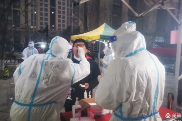 到达杜城街道社区,崔主任立即安排我们到高新华府小区开展采样工作,因为是第一次来,对小区环境和工作流程还不熟悉,表现有点矜持,遇见一位城管,他看见我们身上写的字-山阳县人民医院,激动的说,你们是山阳的,咱们是老乡,我是镇安的,快,跟我来,我带你们到采样点,就这样,我们立即进入了紧张的采样工作状态,那天天气很冷,每次用冰冷的手消液消手都感觉是把手伸进了冰块里,但是我们没有减慢进度,短短四个小时我们就完成了小区一万多人次的采样任务。