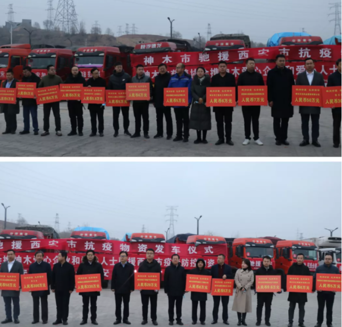 奉献爱心聚力量,守望相助战疫情。神木市用实际行动彰显了神木人民深厚的家国情怀和“忠勇、创新、包容、共享”的神木精神。一车车满载的物资,承载着神木人民的质朴情谊,传递着共克时艰的决心。众志成城,万众一心,相信,抗疫的全面胜利就在不远的前方!(薛小宝)