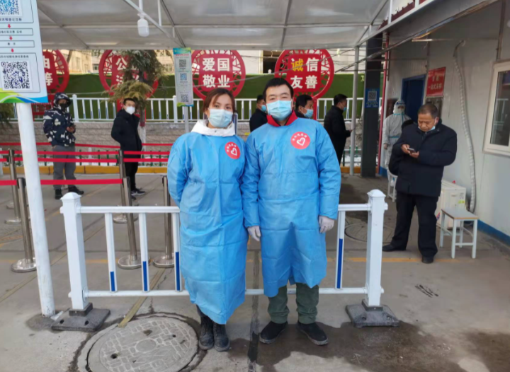 刘金辉告诉记者:“我是彬州市人民医院志愿者小组的组长,平时主要负责医院志愿者人员的调配以及人员补充,媳妇负责医院核酸检测部门秩序维持以及疑问解答。现在家里有三个娃,三个娃都交给父母,我跟媳妇出来给医院做志愿者,唯一的初衷就是,能用自身的行动来教会孩子们做人的道理,愿疫情早日结束。”