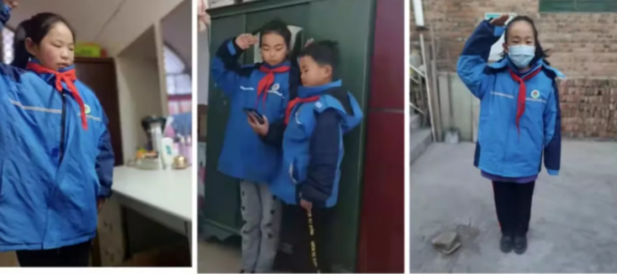 在庄严的国歌声中,鲜艳的五星红旗冉冉升起,李家岔镇中心小学全体师生的心里无不激荡着强烈的民族自豪感。孩子们高唱着“中华民族到了最危险的时候,每个人被迫着发出最后的吼声。起来!起来!起来!”这声音振聋发聩,给人无穷的勇气和力量。这声音无疑是战场上的冲锋号,抗“疫”大军必将一鼓作气,战胜新冠病毒。