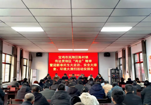 1月18日,凤翔区陈村镇召开传达贯彻区“两会”精神暨迎新春“民生大走访、安全大排查、环境大清扫”三大活动安排部署会。镇领导班子成员,各村党(总)支部书记、副书记,全体机关干部参加会议。