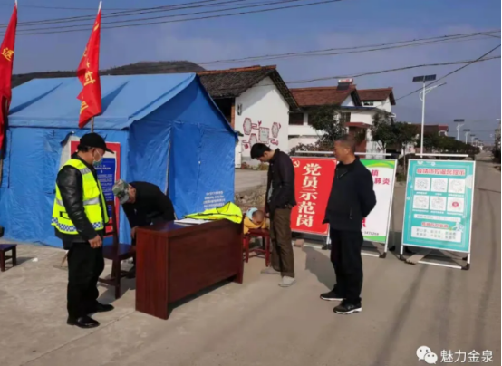 强化组织领导,抗疫力量全发动。战斗伊始,勉县金泉镇党委立即启动疫情防控应急预案,镇疫情防控工作领导小组快速运转、靠前指挥,镇村组防控工作责任体系随即响应,领导班子成员下沉一线各村组指导具体疫情防控工作。发动全镇各党支部和广大党员、民兵、志愿者等积极主动投身疫情防控主战场,组建党员突击队(党员服务队)8支,在全镇辖区各主干道、入村口疫情防控卡点设立8个党员示范岗排查外来人员和返乡人员,全面发动辖区强大力量开展疫情防控。
