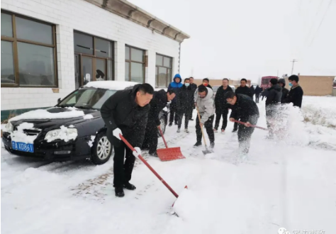 上午9时,该中心全体干部职工带着铁锹、扫帚等工具赶赴分包路段进行扫雪除冰。尽管天气寒冷,大家却干得热火朝天。