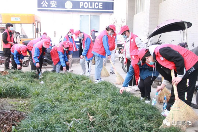 随后,40多名师生志愿者在做好疫情防控的前提下,大家扛着校旗,带着劳动工具科学有序地赴城关街办九子碑社区开展环境卫生大扫除和“消灭烟头”行动,志愿者忙碌的身影,成为一道靓丽的风景线。