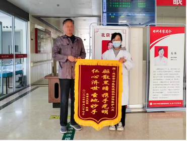 近日,延安市中医医院眼科成功为白内障高度近视患者实施了手术,患者在医护人员精心治疗护理下,顺利康复出院,家属送锦旗表示感谢。(同丽静)
